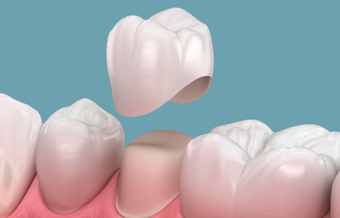 Die abgebildete Brücke besteht eigentlich aus drei Kronengliedern, wobei die zwei äusseren fest auf die Zahnstümpfe zementiert werden und die dritte, mittlere das Brückenzwischenglied bildet. Bevor man die Brücke einsetzt muss der Zahn vom Zahnarzt beschliffen werden. Nach diesem Vorgang spricht man von einem Zahnstumpf.